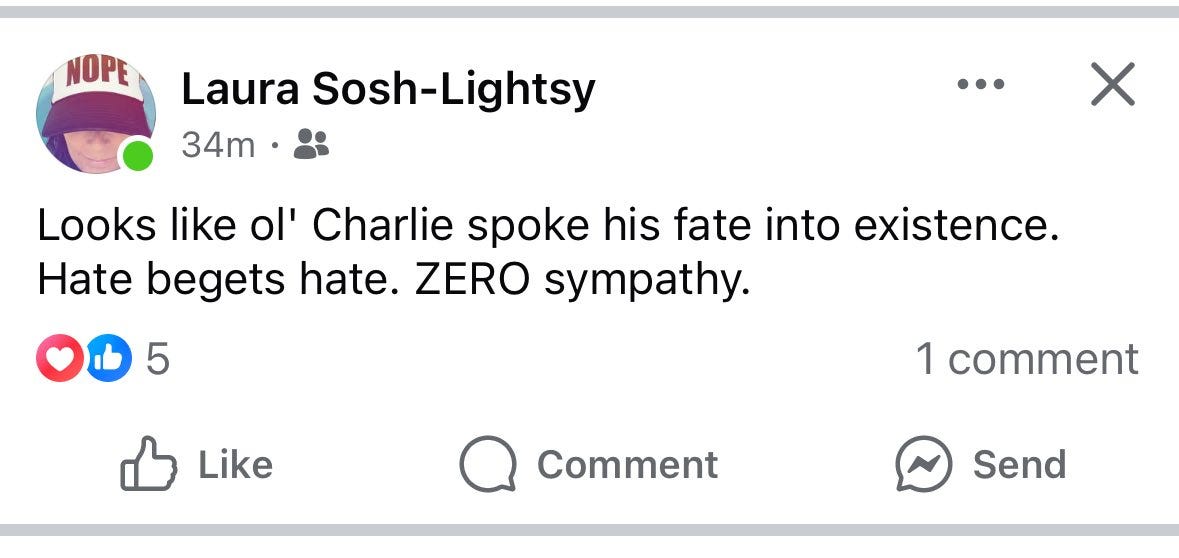 We must also consider the social media backdrop for both Steven Bonnell’s remarks and Kimmel’s, a backdrop where multiple statements have been captured of people celebrating Charlie Kirk’s murder.
