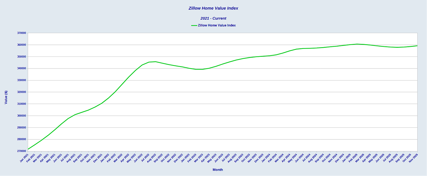 Home valuations rose significantly following the Pandemic Panic before starting to stabilize in mid-2022, experiencing even a modest decline into the spring of 2023. While home valuations recovered somewhat in 2023 and 2024, since the start of the year there has been little if any growth.