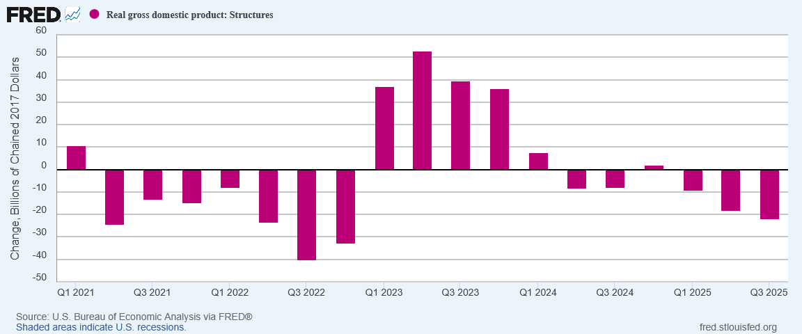 Declining GDP contribution from structures—essentially from construction activities—is hardly an indicator of an expanding economy.