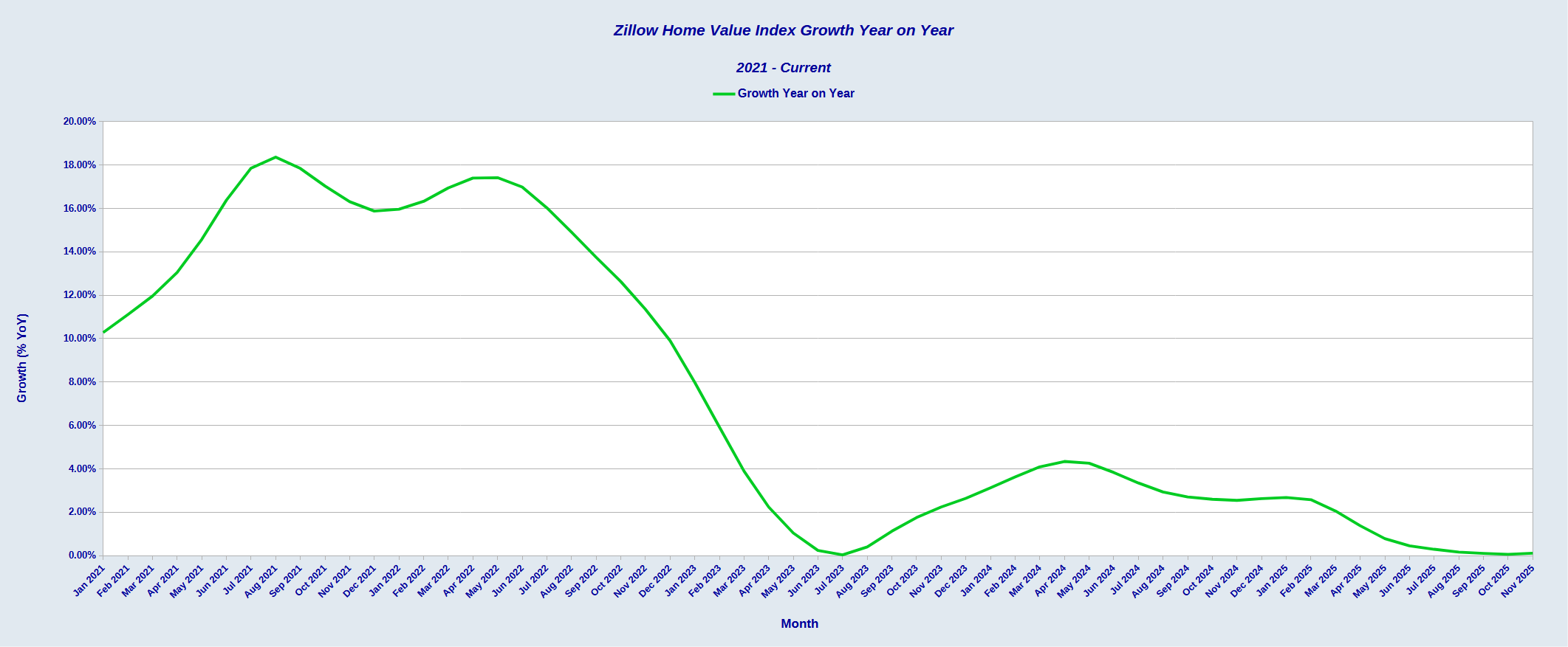 If we look at the percentage growth year on year, we see that home valuations have stopped rising for all intents and purposes.