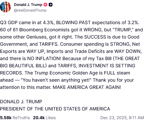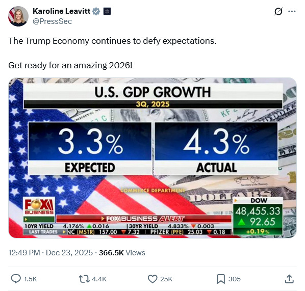 Understandably, the Trump Administration wants everyone to believe that the growth is sustainable—indeed, that the growth is just getting started, and 2026 will see even better growth rates.