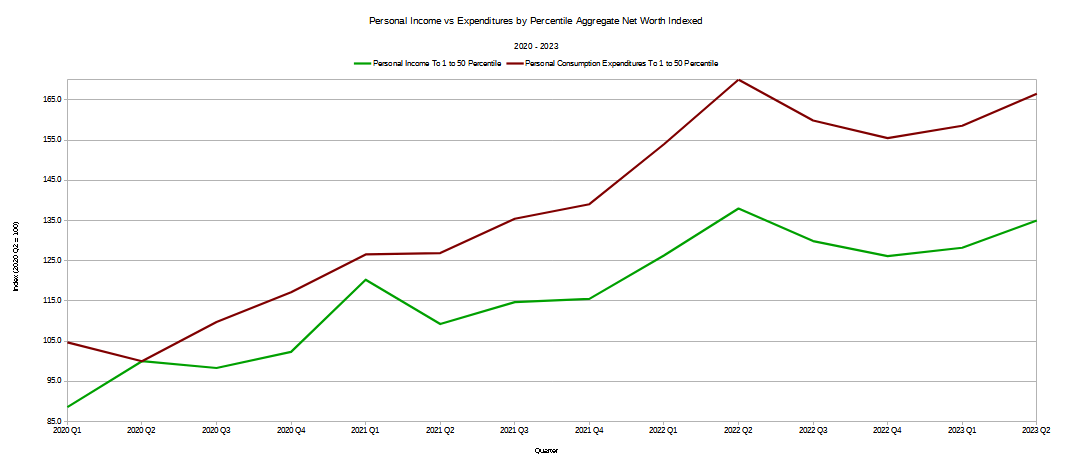 For people in the 1st to 50th percentile, incomes rose 35% while expenditures rose 66.5%.