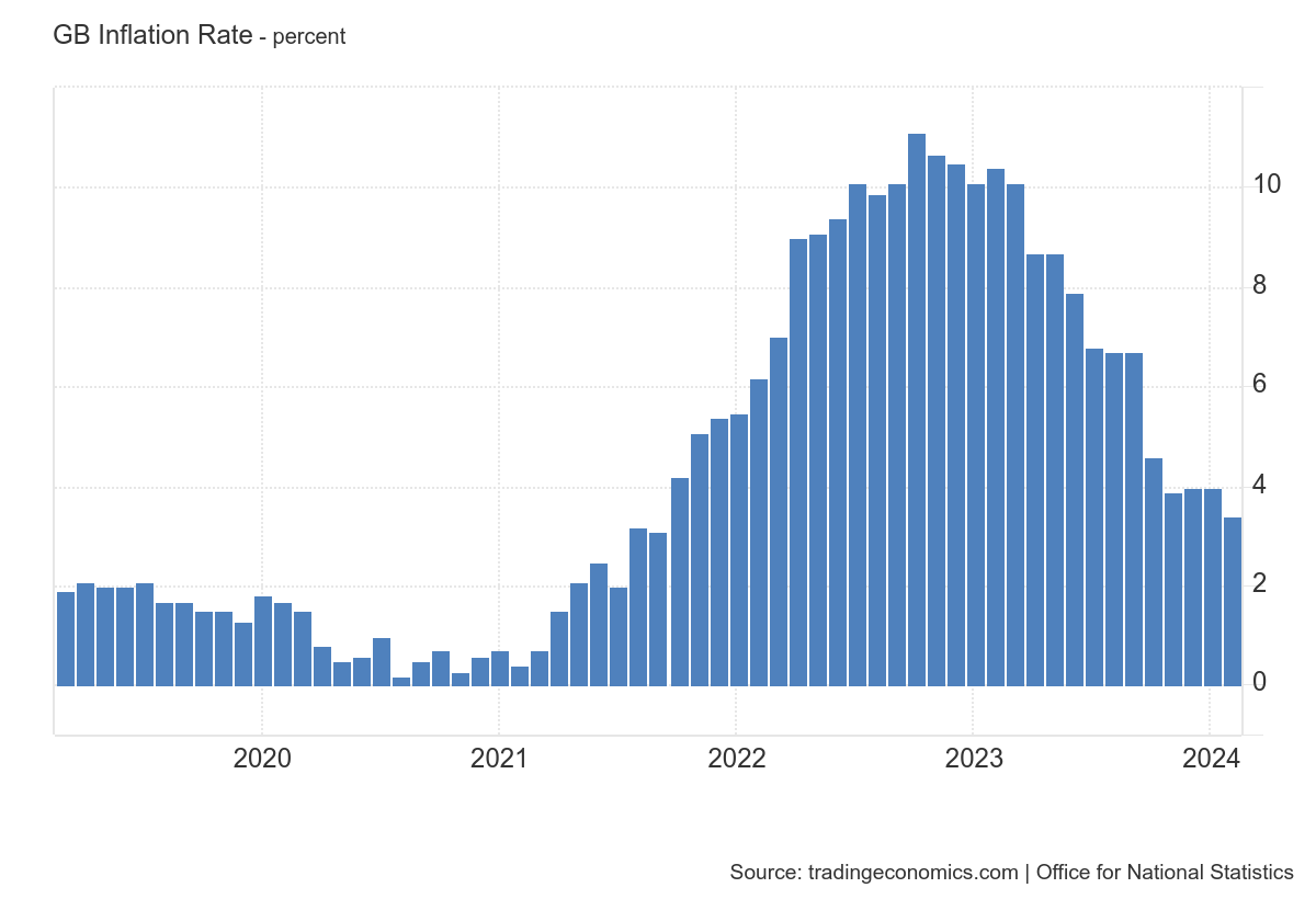 The trend is far less certain in the UK, where month on month inflation has been up and down from month to month recently.