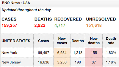At the end of March there were reported approximately 159,257 confirmed cases of COVID-19 (more properly known as CCPVirus, as it comes to us courtesy of the Chinese Communist Party) infection in the United States. 2,922 people were reported to have died from the disease.