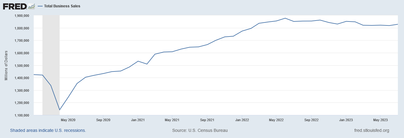However, a close look at a portion of the U.S. Census Data shows that sales activities in the US have not been expanding at a solid pace—or at any pace. In fact, several sales indicators are showing that the US may very well have entered a “retail recession” in the summer of 2022 which arguably is still ongoing.