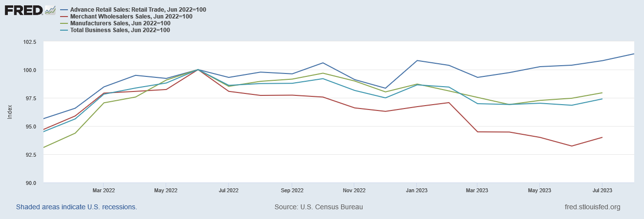 If we look at all of these sales figures together, we see a definite pattern of contraction beginning around June of 2022.
