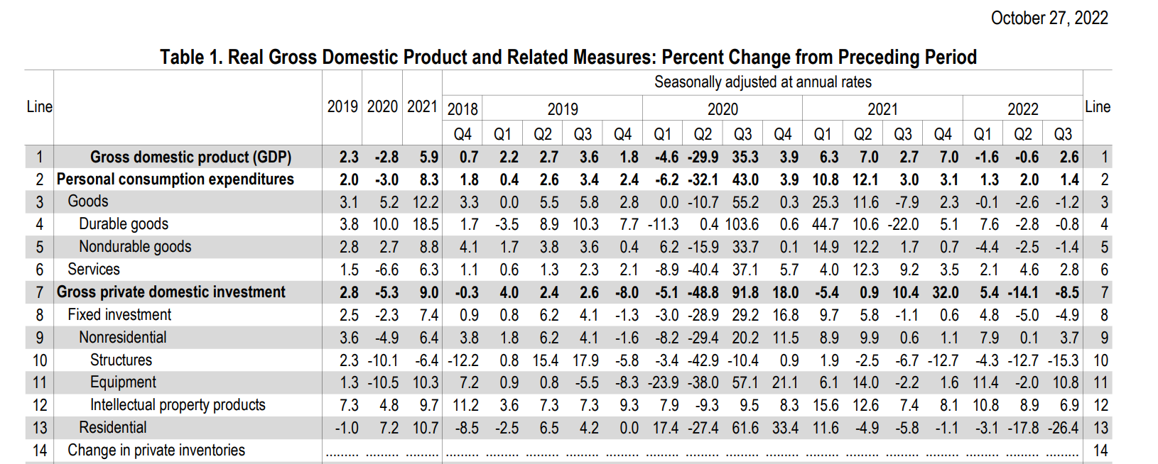 Real gross domestic product (GDP) increased at an annual rate of 2.6 percent in the third quarter of 2022 (table 1), according to the "advance" estimate released by the Bureau of Economic Analysis. In the second quarter, real GDP decreased 0.6 percent.