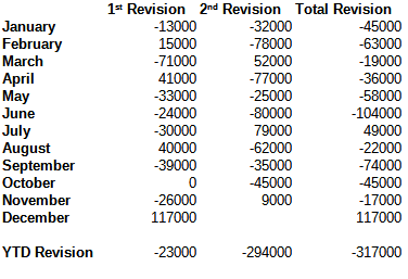 This is, of course, becoming an annual rite of passage for the BLS. Their January “revisions” are simply too fantastical to be taken seriously at any level. This was the case last year at this time.
