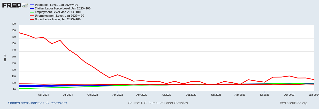 As a simple matter of basic math, there have not been in January enough workers pulled in from the cohort not in the labor force to account for the rise in unemployed, the rise in underemployed, and add 353,000 workers to payrolls. That is not a circle that can be squared.