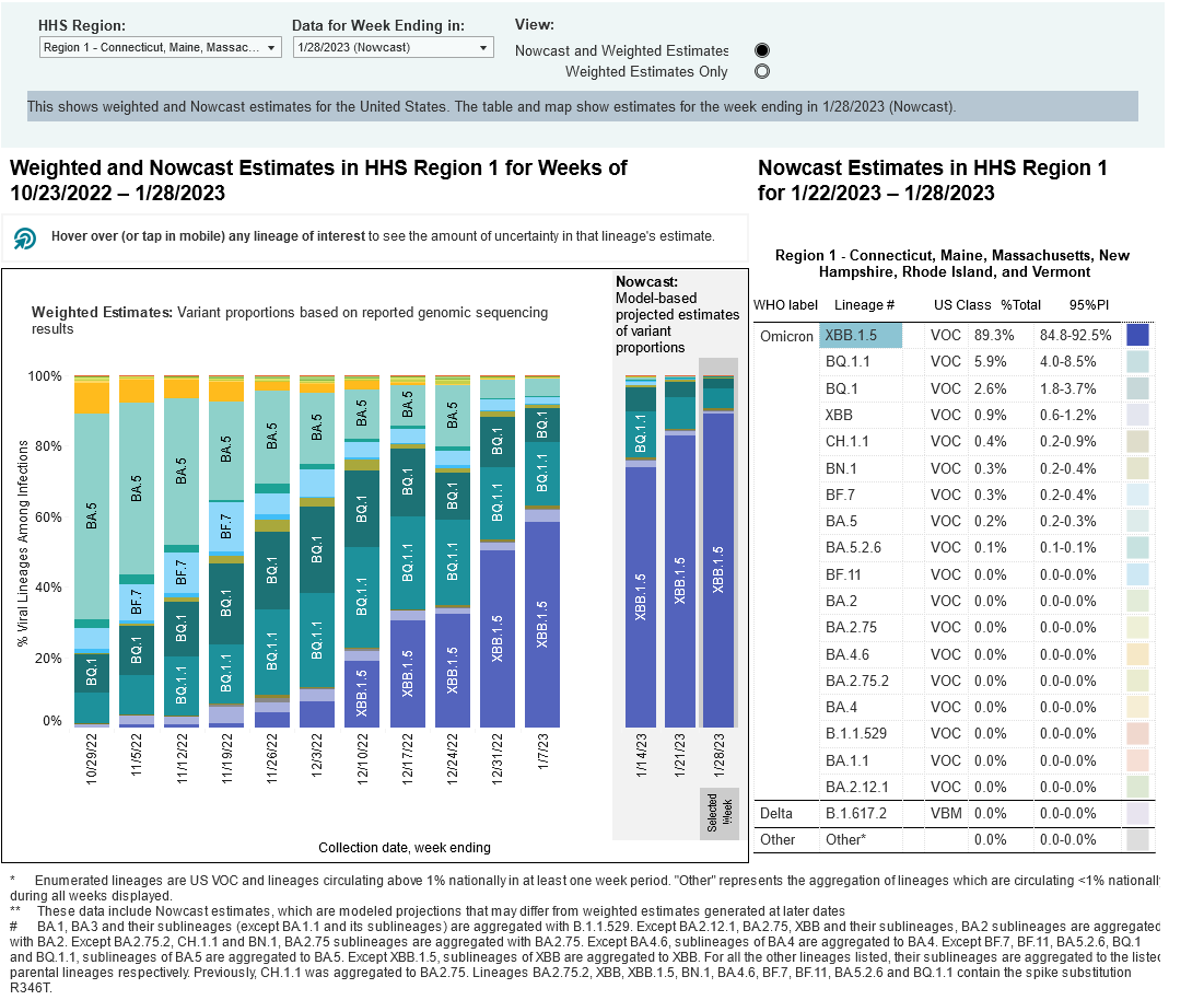 As XBB.1.5 became more dominant in the Northeast, cases declined—which means that XBB.1.5 is not “taking over” as much as other variants (especially BQ.1.1) are fading from the scene.