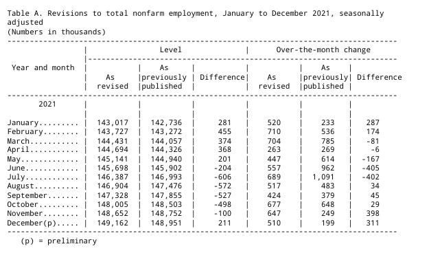 The January Report also shows how the labor department has rewritten employment history, in Table A:
