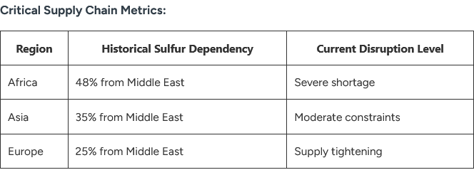 As Africa sources much of its sulfur consumption from the Middle East, the surge in sulfur prices is hitting countries with large resource extraction economies—Zambia and the Democratic Republic Of Congo in particular—extremely hard.