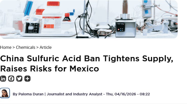 For every media outlet, it is imperative to look past the headlines. Even narrowly focused outlets are prone to provocative and even misleading headlines. An article in “Mexico Business” which covers much of the same territory on sulfuric acid as ZeroHedge, appeared the other day under this headline: