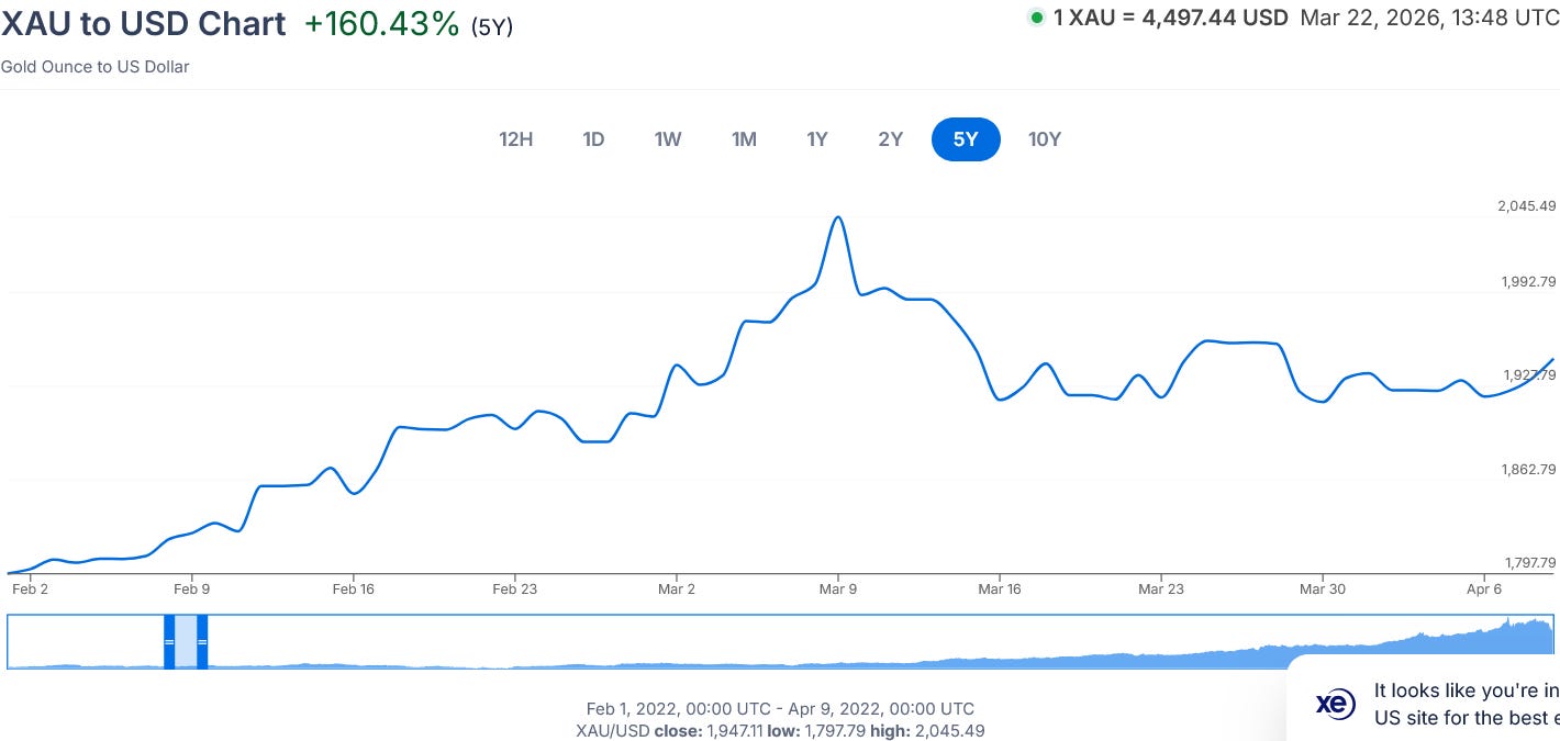 These counterintuitive asset movements in response to evolutions in the war lend a vital perspective to assessing events as they unfold, as they are a constant reminder to check assumptions and question narratives. We do not expect gold to lose value during a geopolitical crisis, and during a war especially. We do not expect the dollar to become an attractive forex play when the United States decides to start a war. Yet these things have happened.