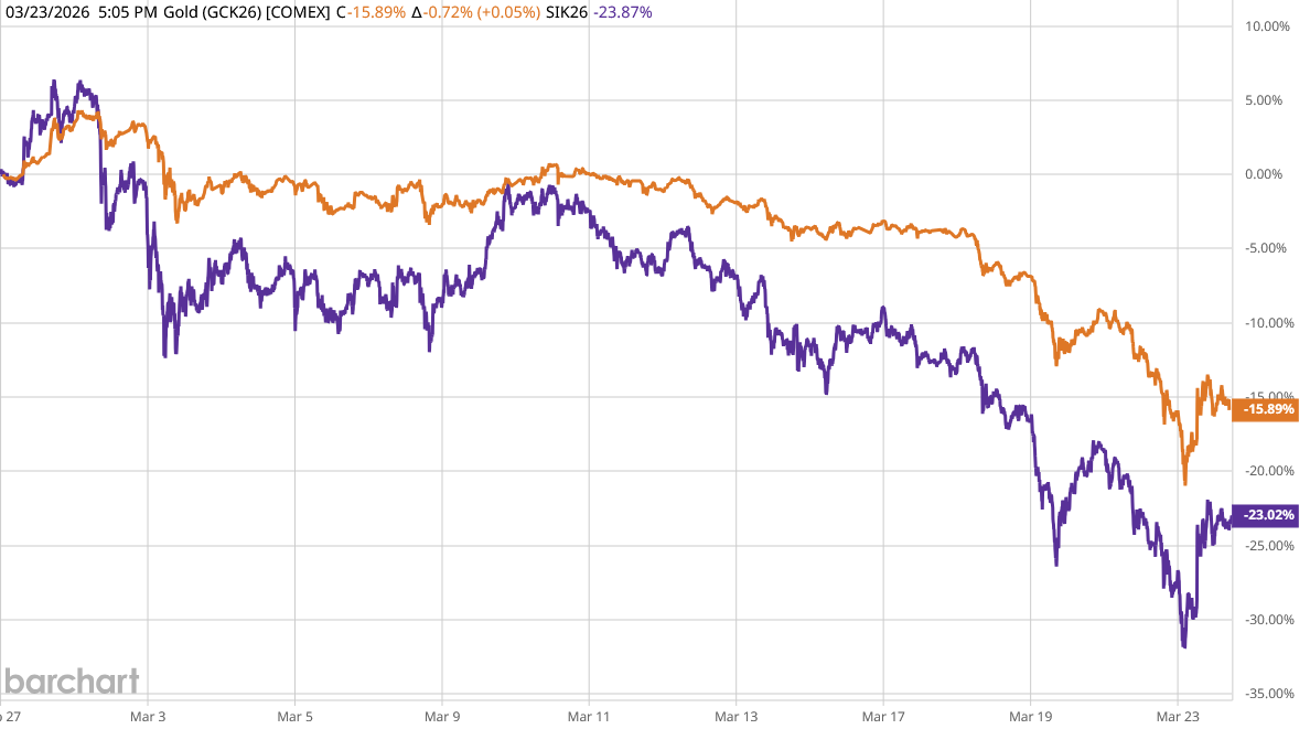 However, after a fleeting “flight-to-safety” moment at the very beginning, as Wall Street sentiment on the war has soured, gold as well as silver prices have dropped.