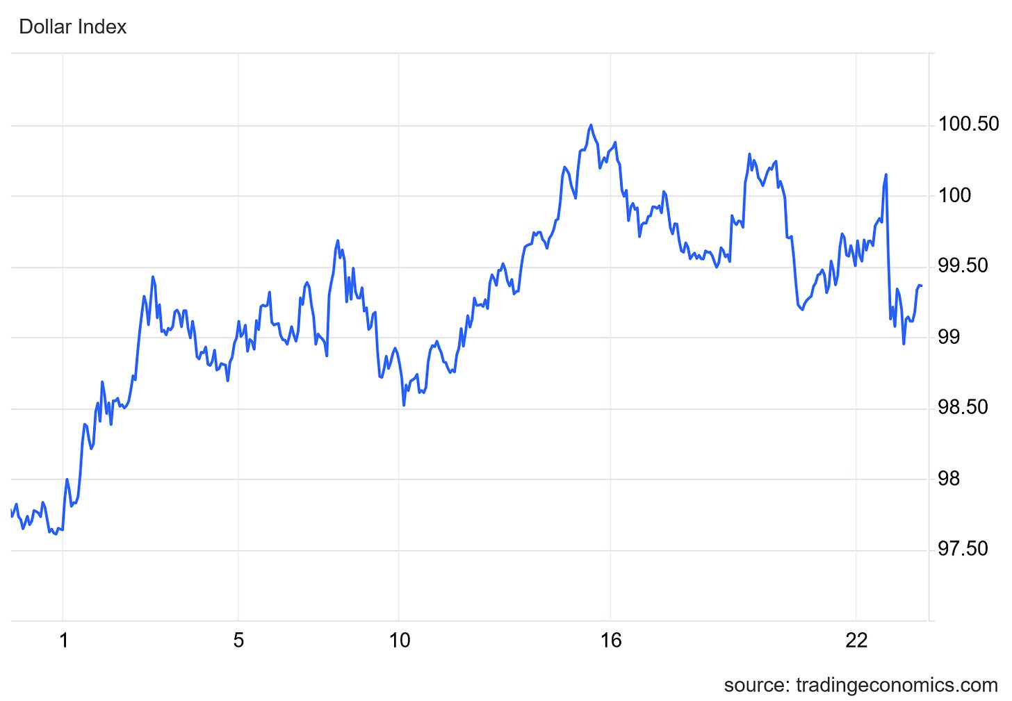 What has been the preferred “flight-to-safety” investment as the war with Iran has unfolded? Suprisingly, it has been dollars. On forex markets the Dollar Index has been climbing steadily since the start of Operation Epic Fury.