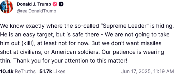 The success of Operations Epic Fury and Roaring Lion also compel us to reevaluate a boast Donald Trump made in the runup to last summer’s Operation Midnight Hammer: that he knew exactly where Khamenei was and could kill him at any time.