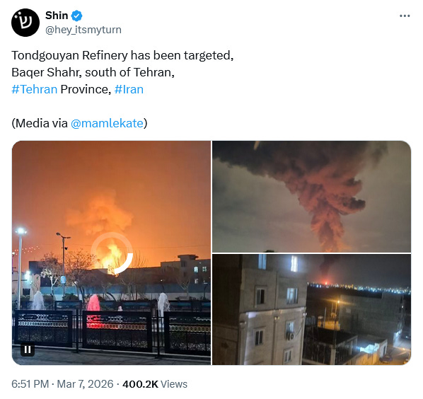 Israel is also reportedly striking oil refineries as well.