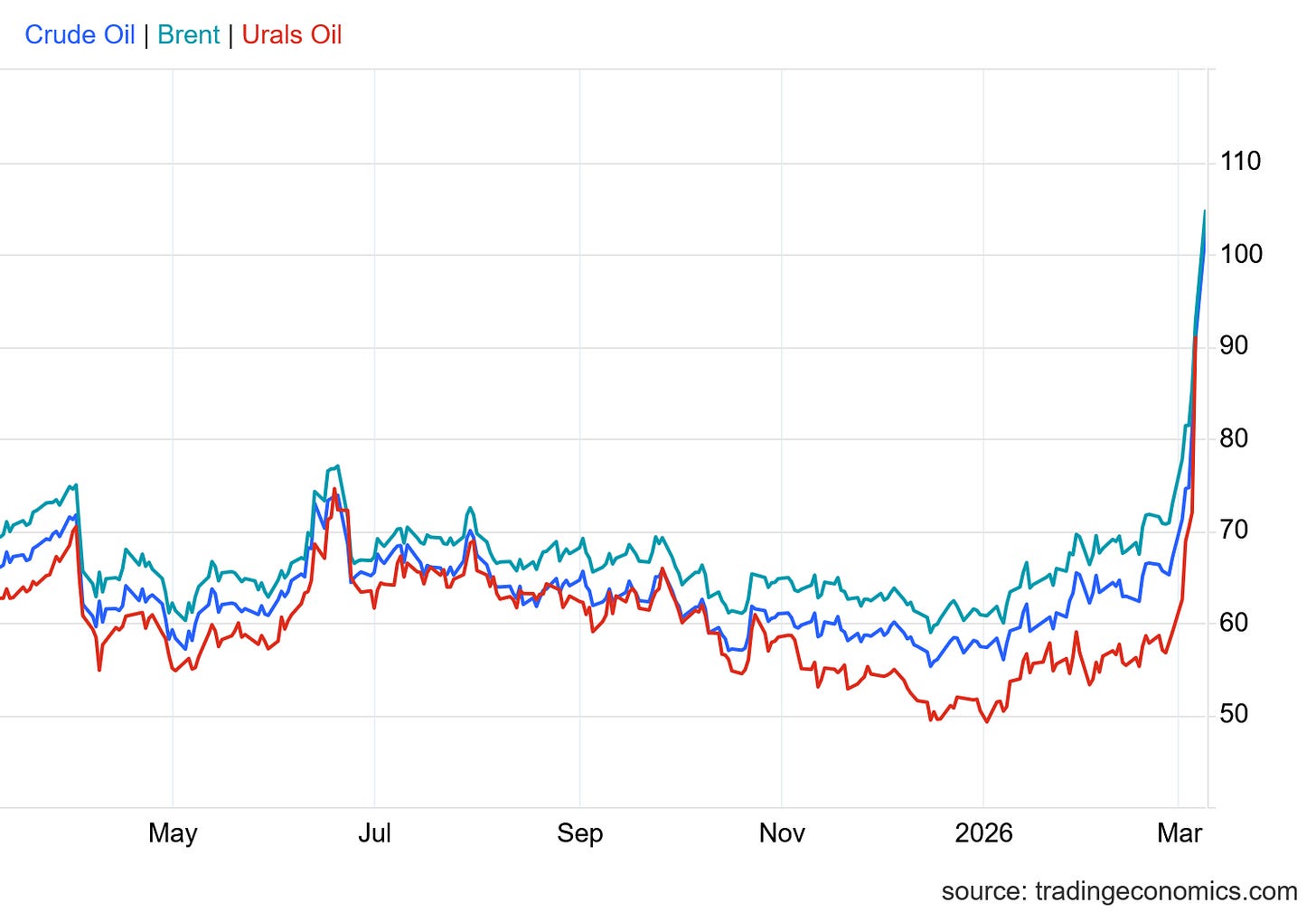 Certainly with respect to the weekend surge into triple digits, he was spot on. Whether Secretary Wright is correct over the long term we do not know, and we cannot know. As with all war, we will not know when this war will end until it ends. Until it ends, the world can look forward to elevated oil prices, constituting an oil shock for many parts of the world.
