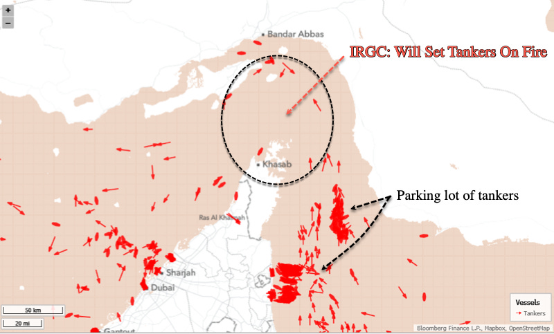 Last week, IRGC commanders threatened to burn any tanker which attempted to transit the vital waterway between the Persian Gulf and the Gulf of Oman.