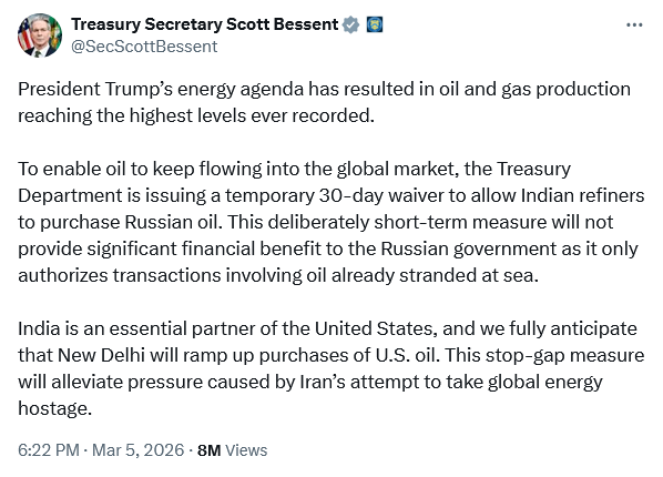 In a bid to alleviate global price pressures, the United States responded by granting India a 30-day waiver to purchased otherwise sanctioned Russian crude.