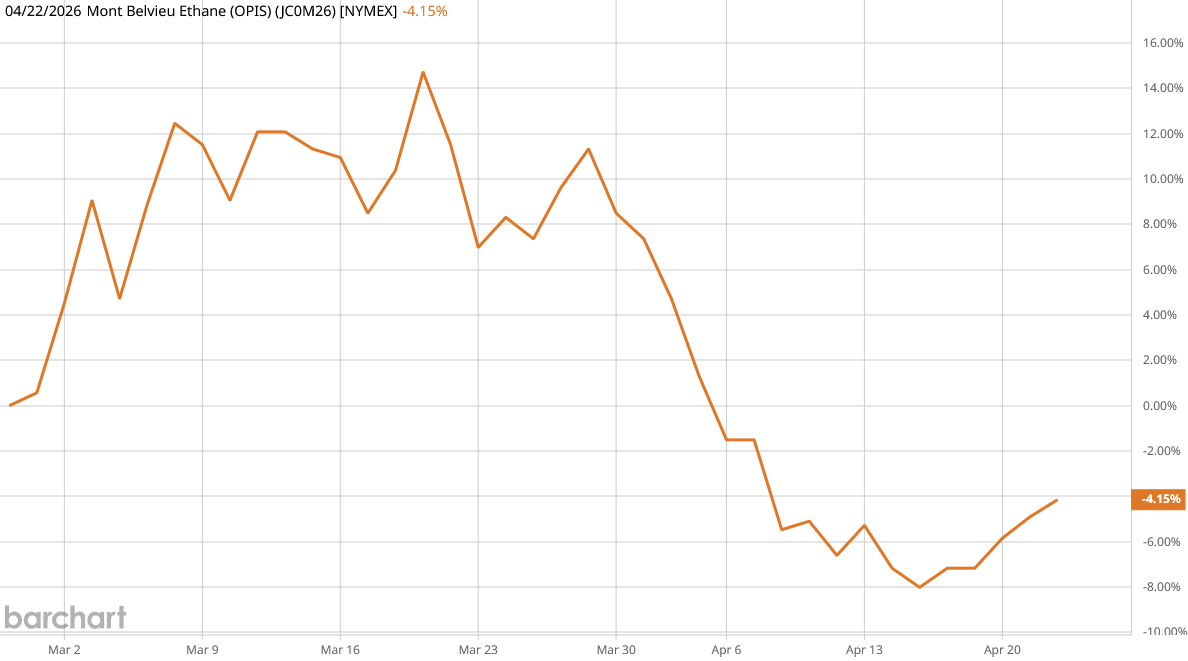 While prices of US ethane have overall fallen since the war began, in recent days the prices have begun climbing again.