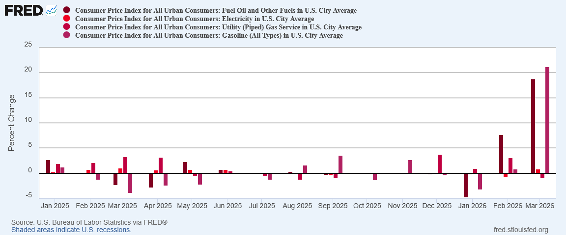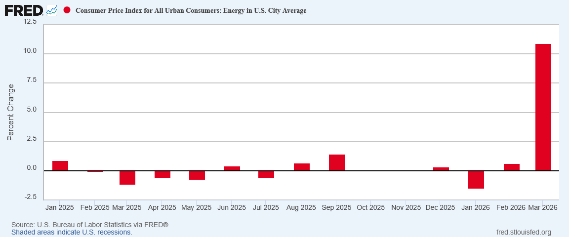 The reason for the disparity, of course, was energy prices, all of which soared in March as a consequence of Operation Epic Fury, President Trump’s war with Iran. That war has resulted in energy prices rising 10.88%.