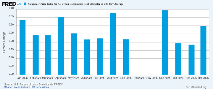 One bit of data has piqued my curiosity: the increase in shelter price inflation. Our border has been closed and more than one million illegals deported, so you would think that would ease shelter price inflation. Any idea why it’s increased?