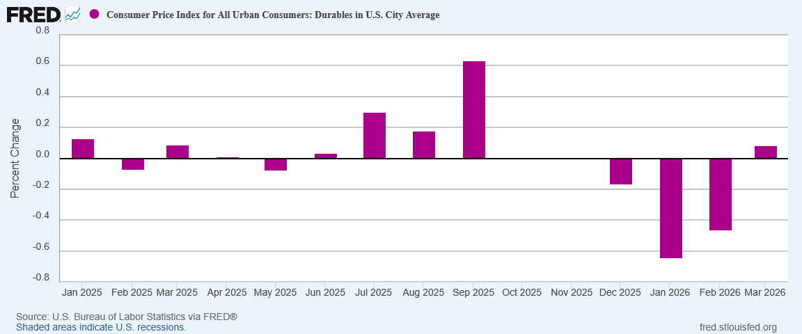 Even durable goods, which have been printing deflation in recent months, returned to month on month inflation.