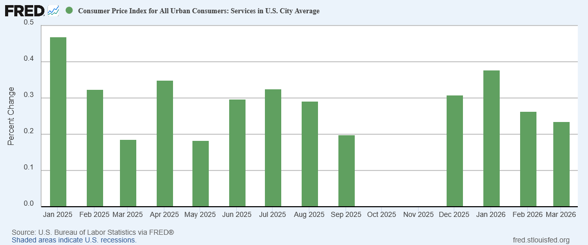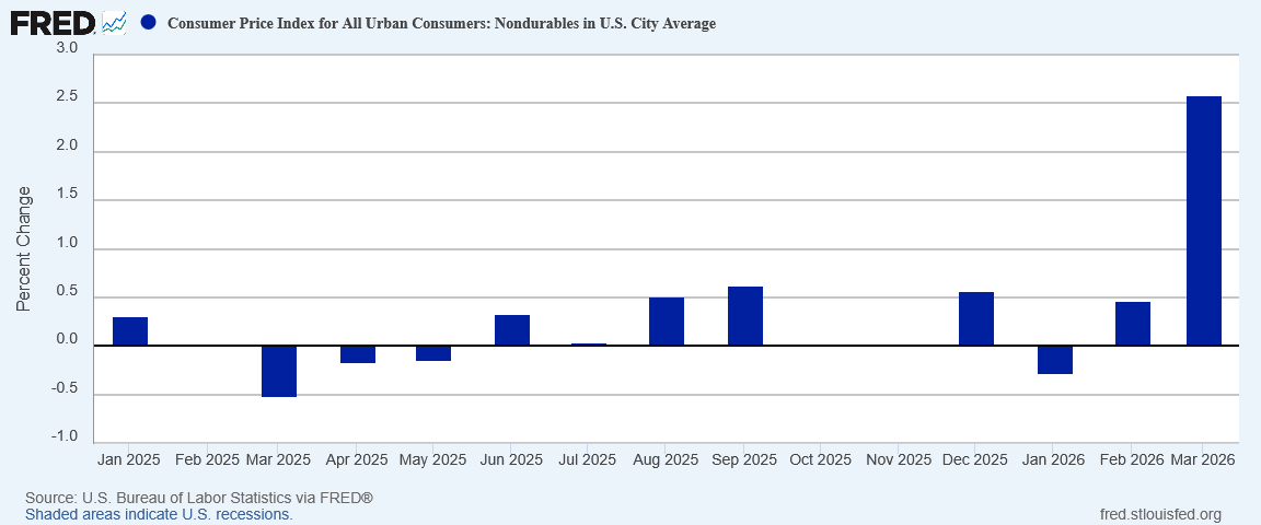 Goods, however, saw inflation heating up significantly. Nondurable goods saw month on month inflation of nearly 2.6%.