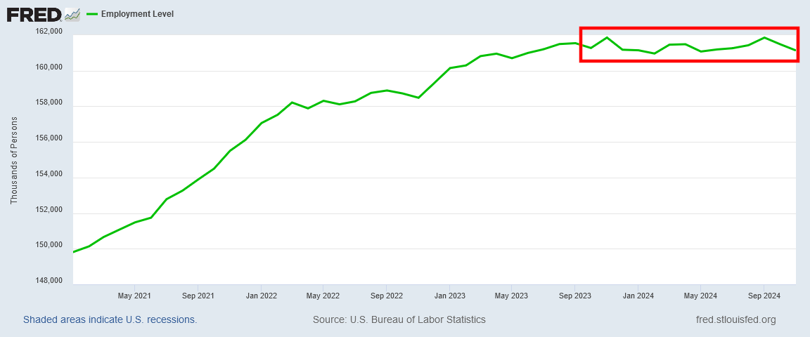 We have been seeing actual job loss since November, 2023—a full year!