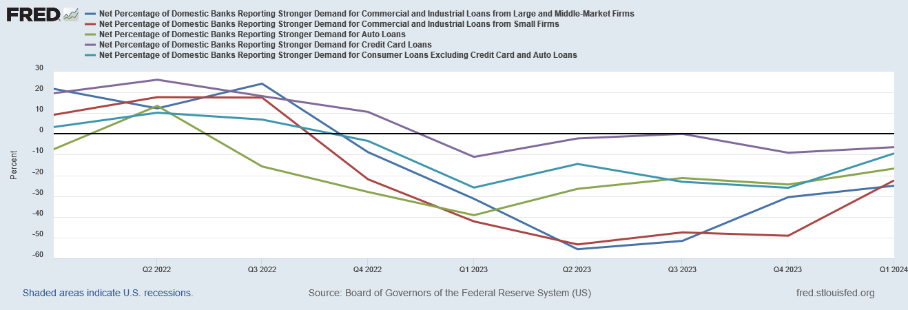 Loan demand is weak for virtually all types of loans.