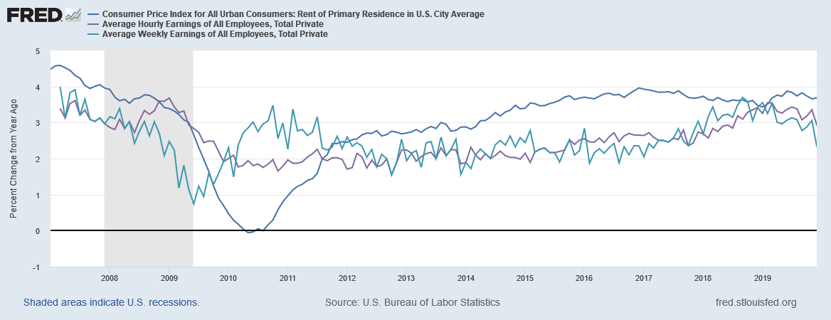 Nor should we overlook what the pre-pandemic status quo was: an economic environment where wage price inflation has consistently lagged rent inflation since at least 2007.
