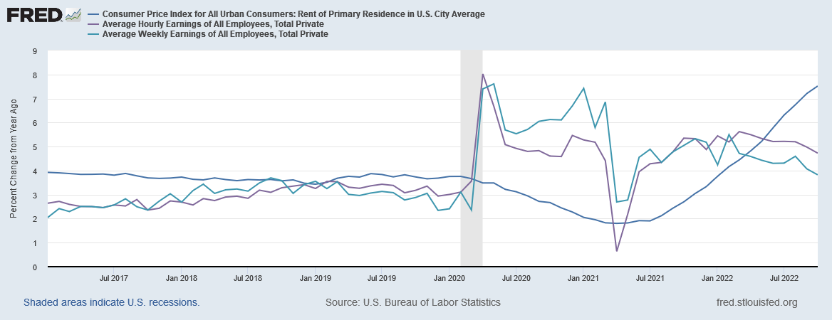 A status quo that has returned in 2022 after a brief interlude in 2020 and 2021 where wage inflation managed to exceed rent inflation.
