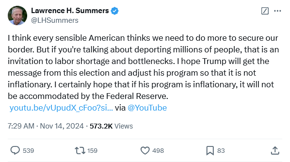 Nor is that merely political rhetoric. Harvard economist and former Treasury Secretary for President Clinton Larry Summers tweeted in November that President Trump’s commitment to “ending the migrant invasion” would cause a labor shortage which would in turn exacerbate inflation.