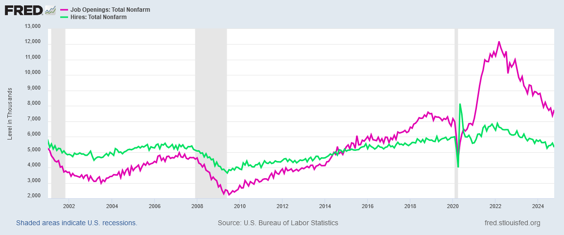 Even before the start of the (Biden-)Harris Administration, the number of reported job openings has surged, especially relative to actual hiring.