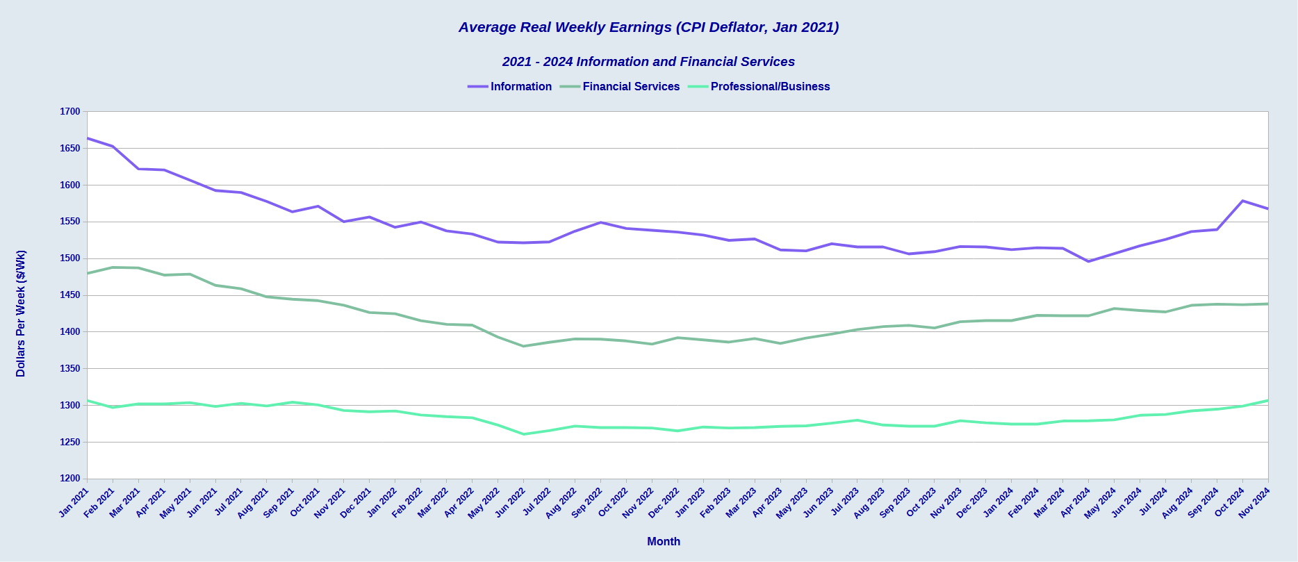 However, this cannot be the case, because at the time these surpluses were rising to their highest levels, average real weekly wages in these same professional service areas were declining.