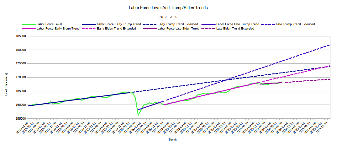 What they illustrate is that at the pace of labor force expansion under Donald Trump post-COVID lockdowns, the labor force would have by October of this year reached the same level the Trump Administration would have reached had the COVID lockdowns not disrupted the labor force as much as it did.