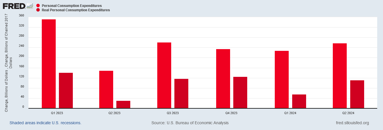 We have reason to be skeptical. Not only is joblessness on the rise, but personal consumption expenditures, which the BEA credits with a bulk of the Q2 growth, have been getting softer, not more robust.