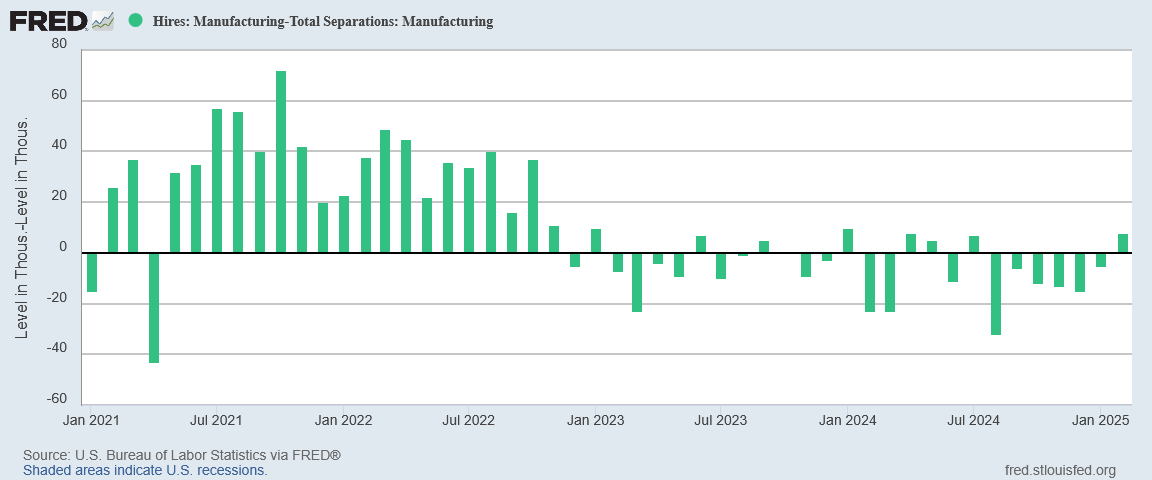 As a result, net hiring—the difference between hires and separations—did improve slightly in February.