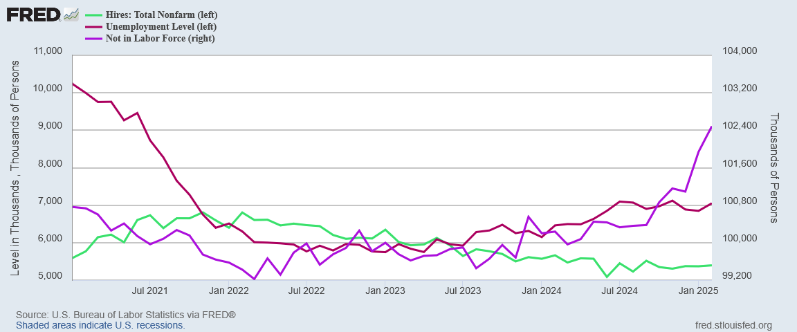 That deteroriation in US labor markets was especially noticeable at the end of 2024, without much improvement if any since then.