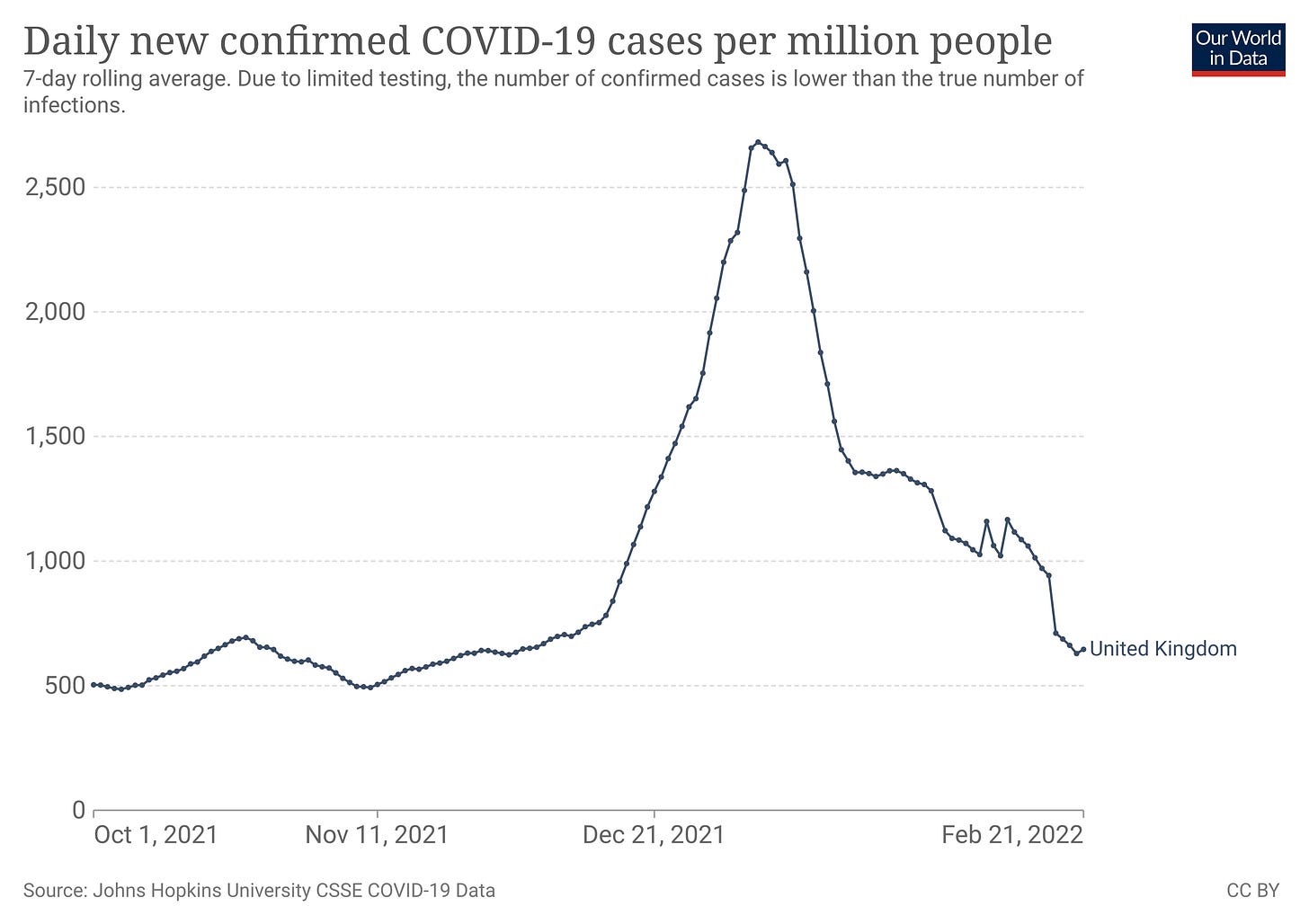 Even so, the empirical backdrop in the UK is that COVID-19 cases have been declining since the new year. BA.2 outcompeting BA.1 at this juncture means only that it is fading more slowly than BA.1.
