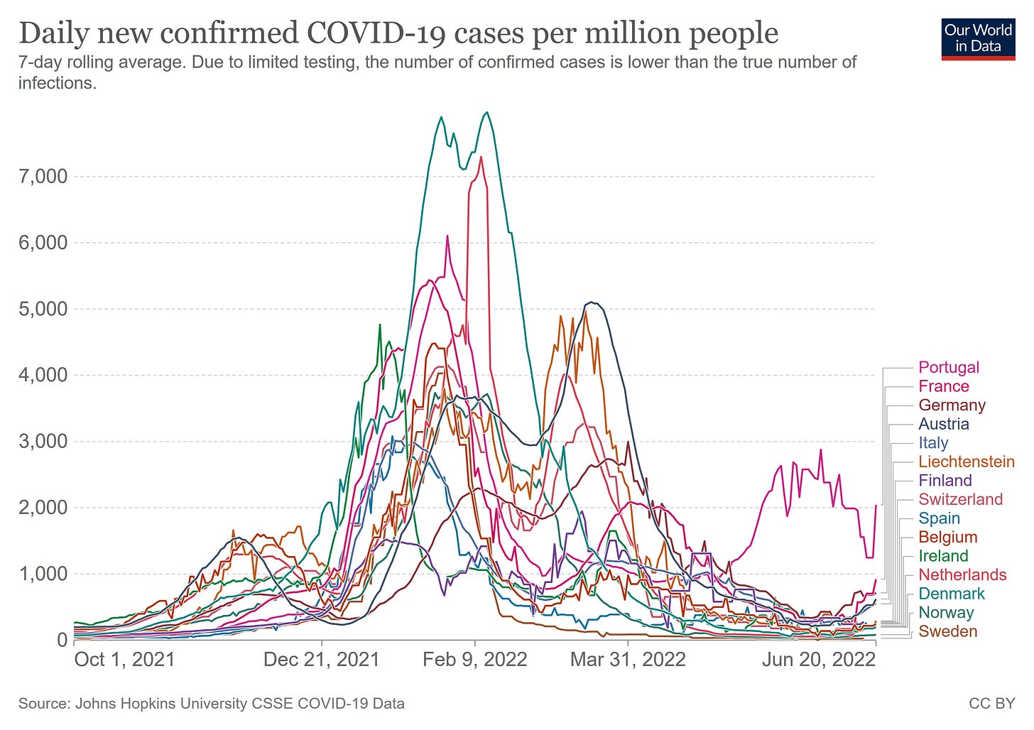 It should also be noted that the daily case counts for monkeypox in any one country do not resemble in the slightest the infection “waves” we see with the SARS-CoV-2 virus.