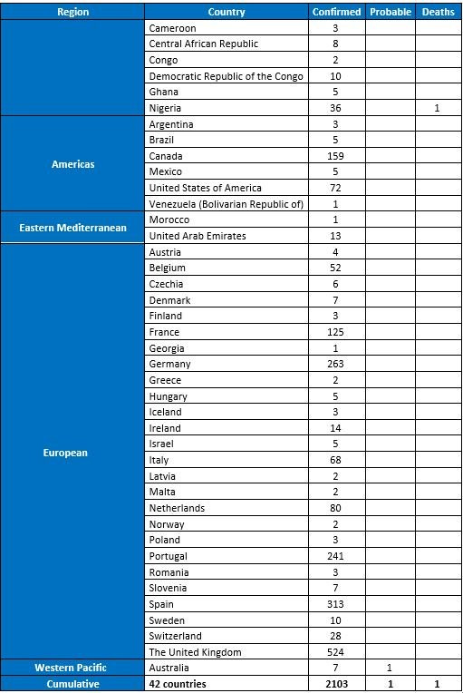 While no deaths have been reported in newly affected countries, 72 deaths have been recorded from previous outbreaks.