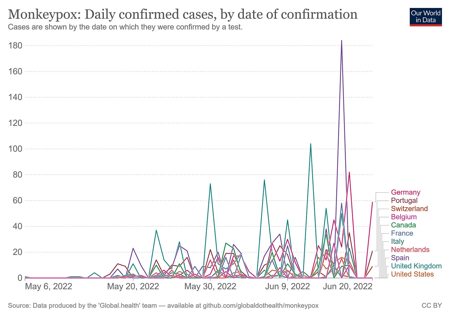 In a related vein, the corporate media right on cue is ramping up calls for lots and lots of testing here in the US. The reason we need more testing for monkeypox? Because the UK is reporting more cases—seriously, that’s the rationale of The Washington Post.