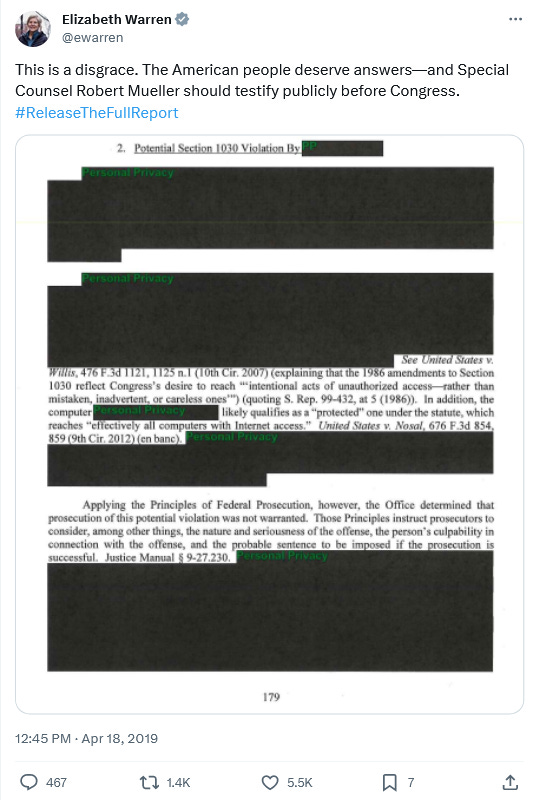 After many months, many subpoenas, many interviews, and endless bloviation, hyperventilation, and fabrication by both the legacy media and portions of the alternative media, the much-anticipated Mueller Report has finally been released to the public. Aside from redactions (which are disturbing to some, a non-issue to others), we may now see what Robert Mueller has seen, we will now know what Robert Mueller has known.