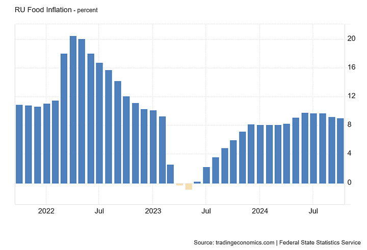 Theoretically, inflation is under control, as Russia’s official inflation rate is at 8.5%, and the official food price inflation rate is at 9%.