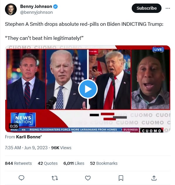 Independent journalist Benny Johnson highlighted a statement by sports commentator Stephen A. Smith: “They can’t beat him legitimately!”