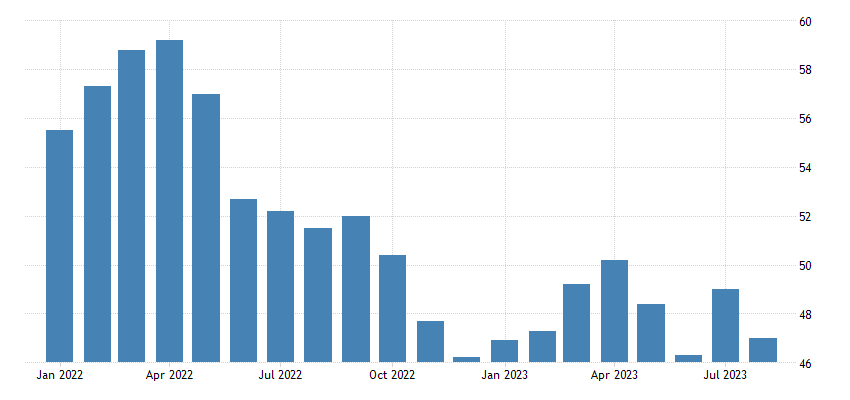 The declining industrial production figures align with the Purchase Managers’ Index data which shows manufacturing in a state of contraction.