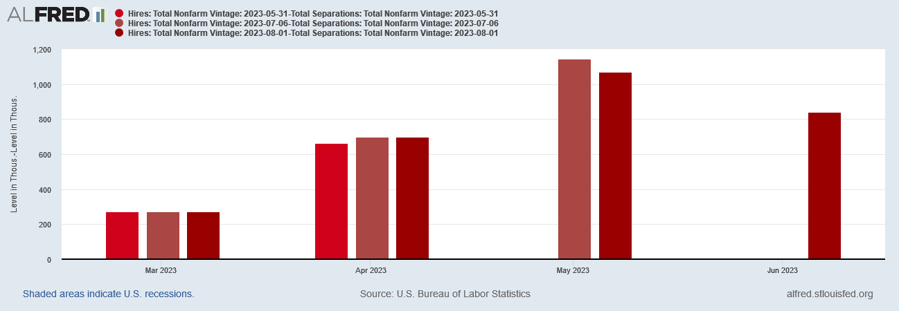 This rise in employment during Q2 is confirmed by the net hires from the JOLTS report.